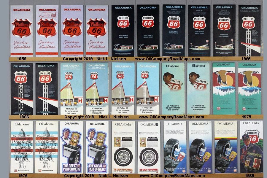 I believe the above Phillips maps represent a complete run of Phillips State Maps from 1930 to 1985. As you can see the majority of the maps are of the State of Oklahoma, I am trying to build a complete set of Phillips Oklahoma maps. The 1981 map has an 81 stamp on the title, I believe this is a file copy from the map manufacturer. I have corrected the errors from the old post for the 1976 thru 1985 section.